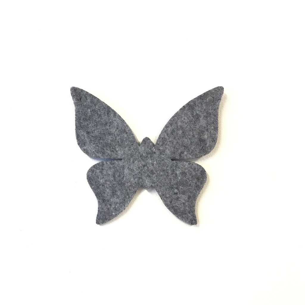 Leveres med 6 sommerfugle og ca. 150 cm sort snor. Kan bruges til pynt på ex. Sengen. Væggen eller også over puslebordet.